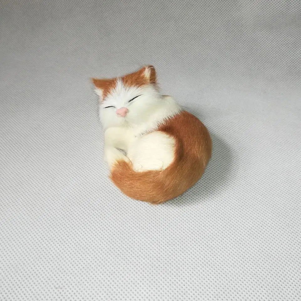 ORIGINAL mini 10x7cm real life toy white-yellow sleeping cat hard model craft home decoration gift h1373