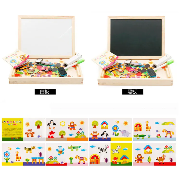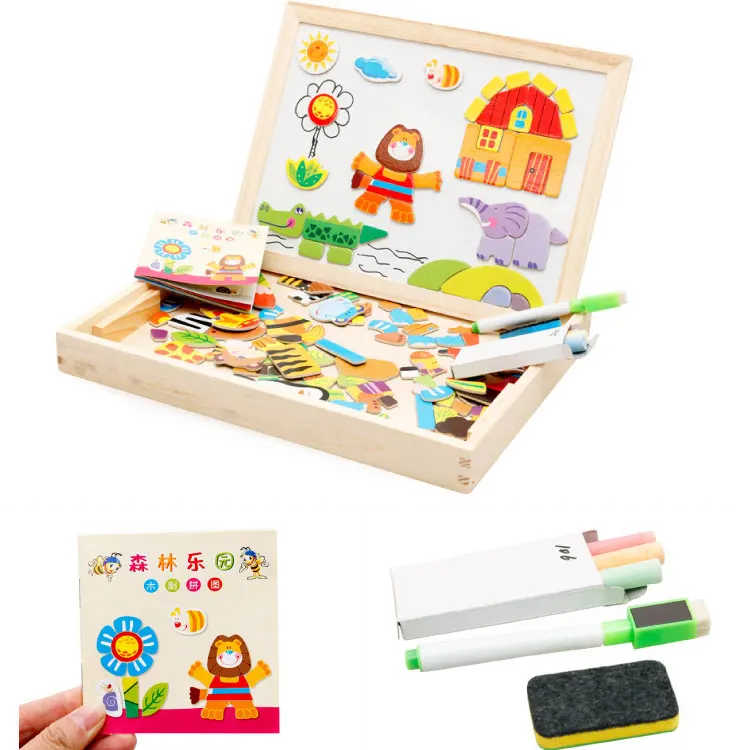Hot Sale Kids Wooden Easel New Children Multifunctional Writing Board Magnetic Animal Puzzle Sketchpad Woode